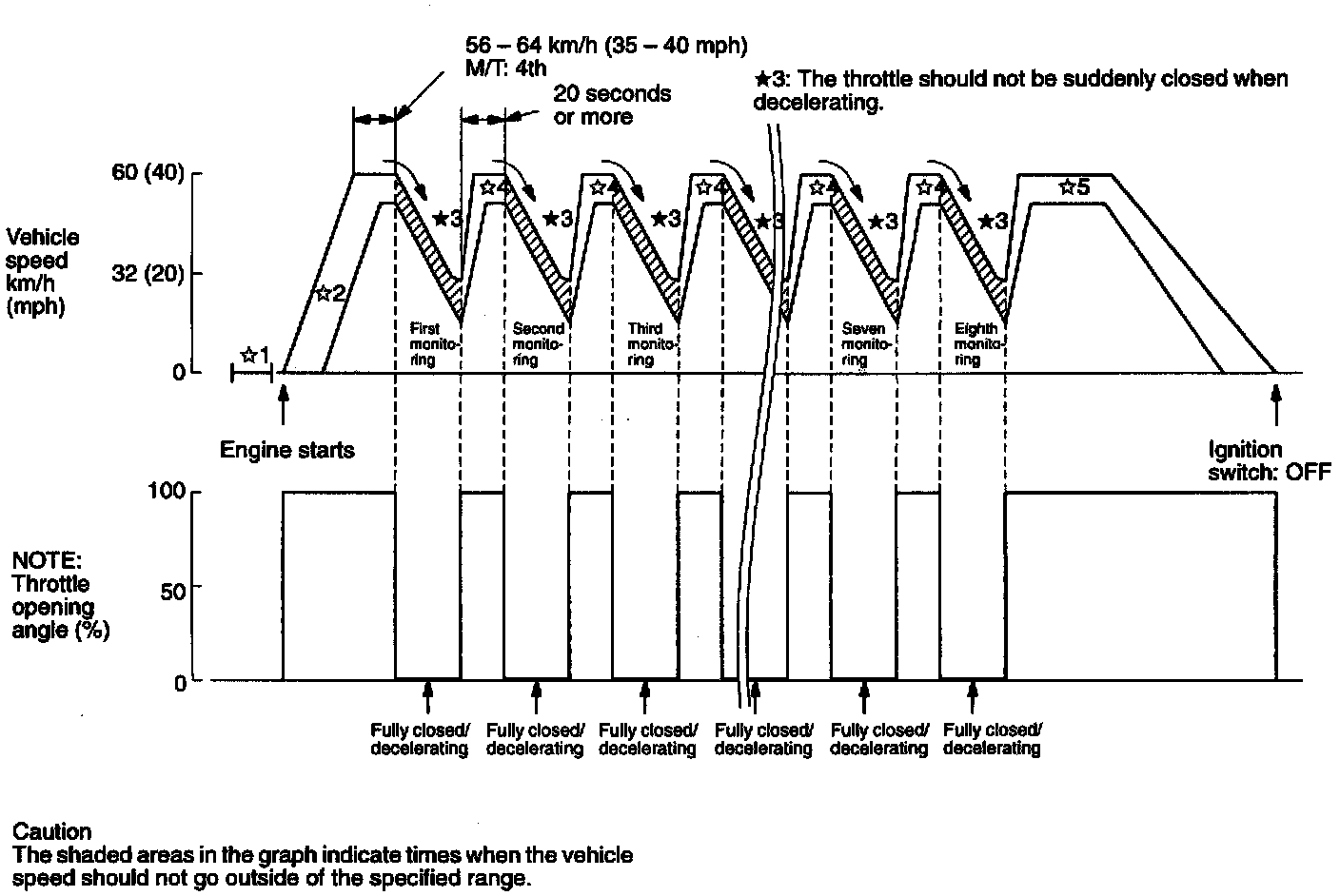 *4: Accelerate to between 56 - 64 km/h (35 - 40 mph) and drive at this speed for 20 seconds or more.