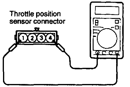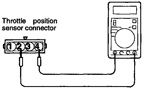 2. Measure the resistance between the throttle position sensor side connector terminal 1 and terminal 4.