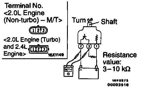 2. Turn the shaft of the vehicle speed sensor and check that there is voltage between terminals 2 - 3 (1 turn = 4 pulses)