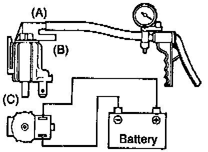 4. Check air tightness by applying a vacuum with voltage applied directly from the battery to the EGR control solenoid valve and without applying voltage.