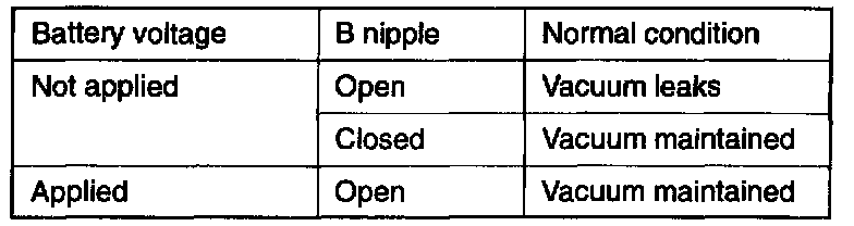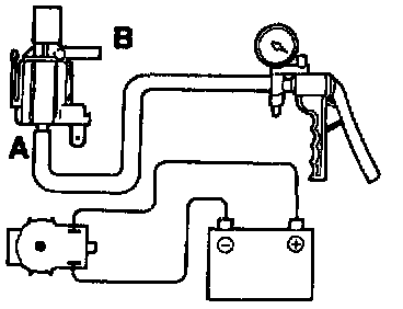 4. Connect a battery to the solenoid valve and apply a vacuum to check air-tightness.