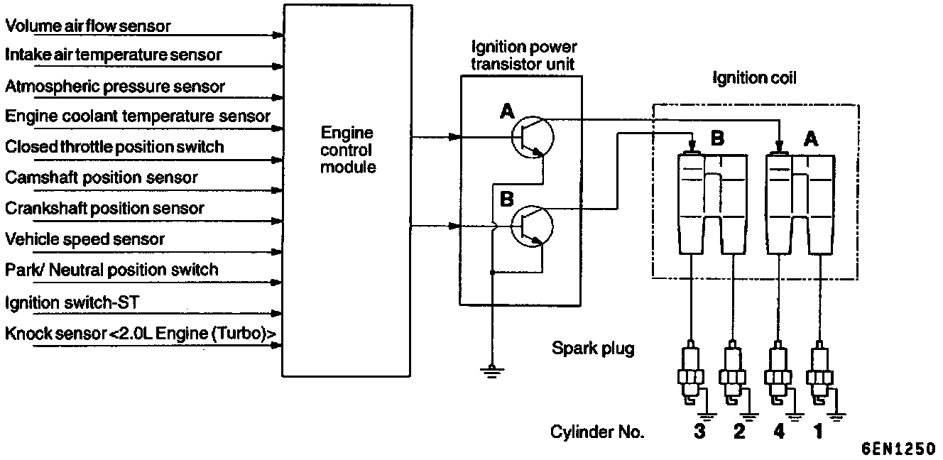 The engine control module determines which ignition coil should be controlled by means of the signals from the camshaft position sensor which is incorporated in the camshaft and from the crankshaft position sensor which is incorporated in the crankshaft. It also detects the crankshaft position in order to provide ignition at the most appropriate timing in response to the engine operation conditions.