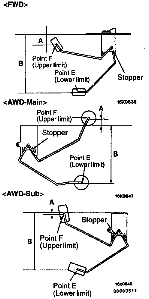 Move the float and measure the height A at point F (highest) and B at point E (lowest) with float arm touching stopper.