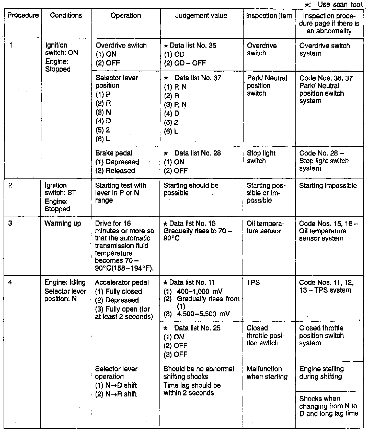 Non-Trouble Code Procedures
