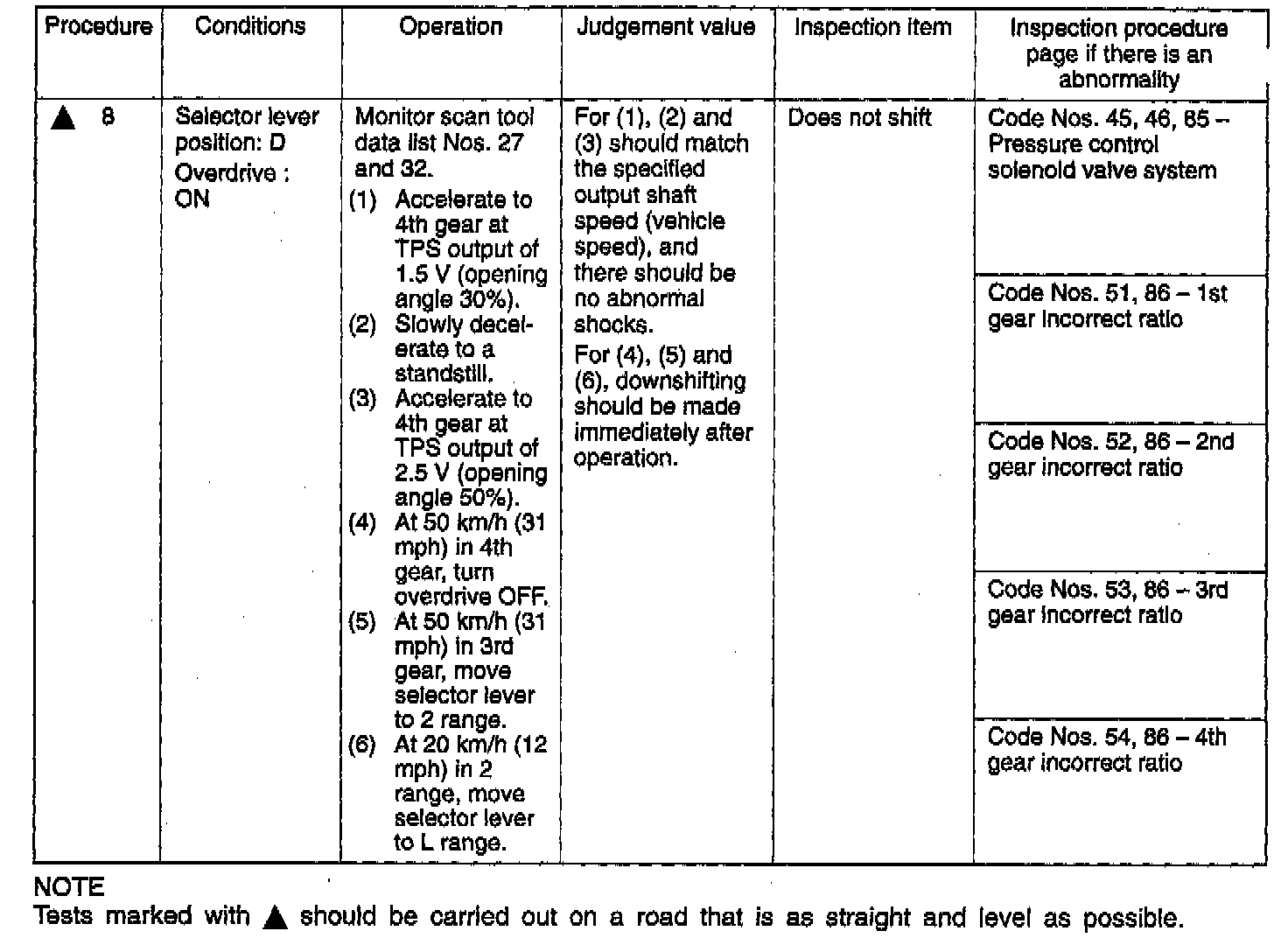 Road Test Diagnostic Procedures