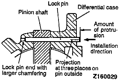 - The lock pin head must be sunk from the flange surface of the differential case.