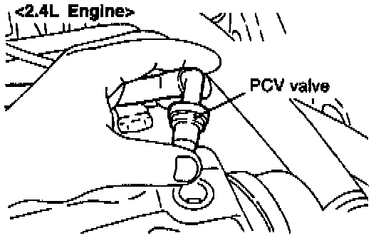 3. If negative pressure is not felt, clean or replace the PCV valve. inspect the vacuum supply hose and vacuum supply hose port for restriction or plugged condition.