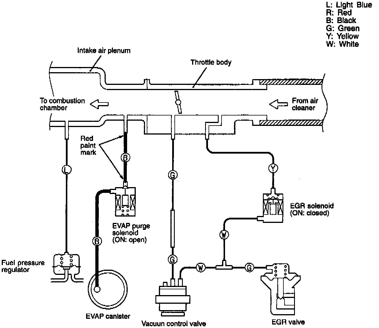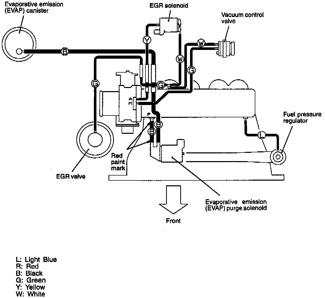 Using the VACUUM HOSE ROUTING as a guide, check that the vacuum hoses are correctly connected, and that there are no bends or damage to the hoses.