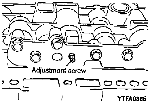 8. Turn the adjustment screw of the regulator valve and adjust so that the line pressure (kickdown brake pressure) becomes the standard value. When the adjustment screw is turned clockwise, the line pressure decreases; when it is turned to counterclockwise it increases.