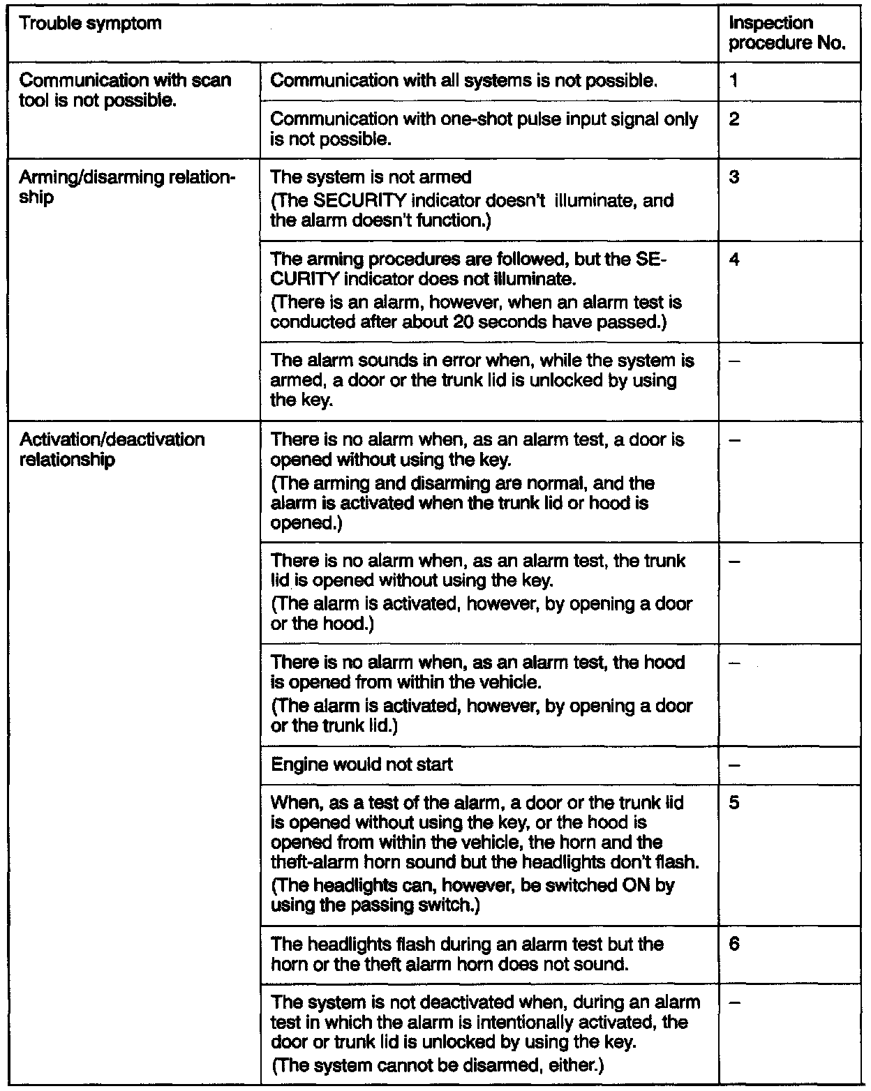 Inspection Chart For Trouble Symptoms: