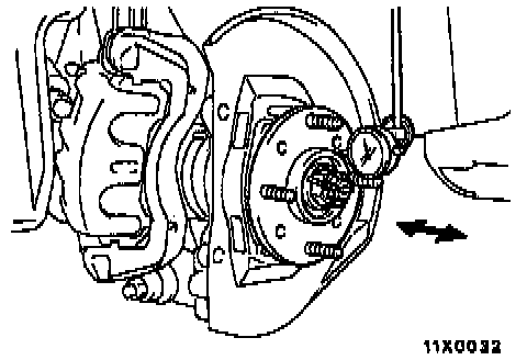 c. If the play is equivalent to or exceeds the limit, disassemble the hub knuckle and check each part.