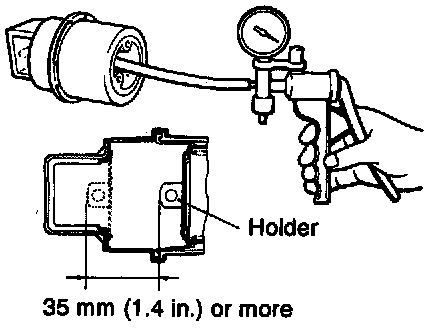 2. Apply negative pressure to the actuator with the vacuum pump and check that the holder moves more than 35 mm (1.4 in.). In addition, check that there is no change in the position of the holder when negative pressure is maintained in that condition.