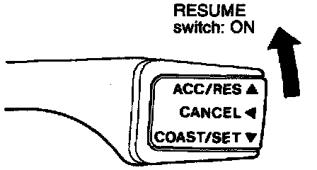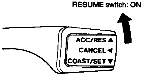 3. At a vehicle speed of 40 km/h (25 mph) or higher, check if when the RESUME switch is switched ON, vehicle speed returns to the speed before auto-cruise control driving was cancelled, and constant speed driving occurs.