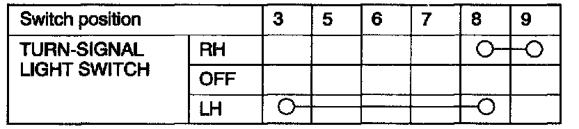 Column Switch Continuity Check Chart <Turn-Signal Light Switch>: