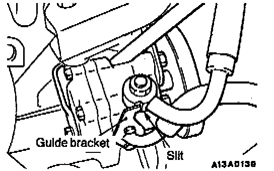 1. Connect the pressure hose so that its slit part contacts the oil pump's guide bracket.
