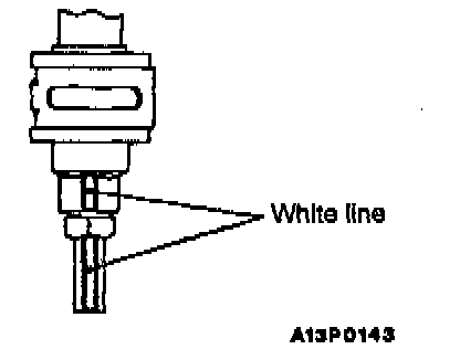 2. When the pressure hose is installed, align the white line on the pressure hose with the white line on the pressure tube so that together they form a straight line.