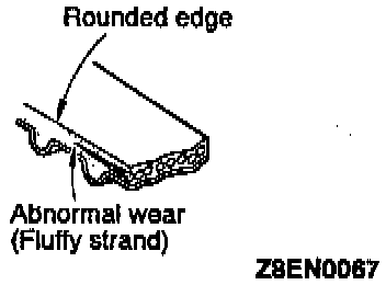 6. Abnormal wear of belt sides. The sides are normal if they are sharp as if cut by a knife.