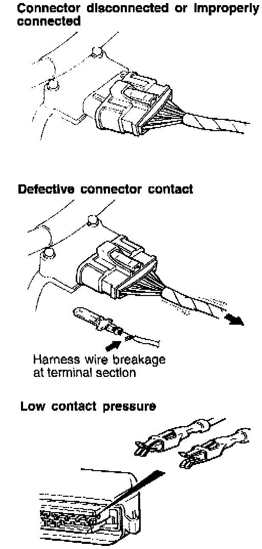 - Connector pins are pulled out due to harness tension at terminal section