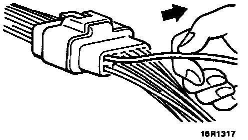 If the connector pin stopper is damaged, the terminal connections (male and female pins) will not be perfect even when the connector body is connected, because the pins may pull out of the back side of the connector. Therefore, gently pull the wires one by one to make sure that no pins pull out of the connector.
