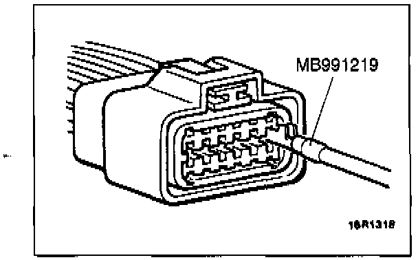Use the special tool (connector pin connection pressure inspection harness of the inspection harness set) or a comparable male and female terminal attached to a wire, to inspect the engagement of the male pins and female pins. [Pin drawing force: 1 Nm (0.2 lbs.) or more]