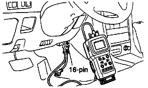 Connect a suitable scan tool to the data link connector. The data link connector is located under the lefthand side of the instrument panel. Follow scan tool manufacturers instructions
