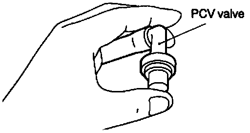 (2) With the engine idling, put finger on the open end of the PCV valve, and check for negative pressure (vacuum) with finger.
