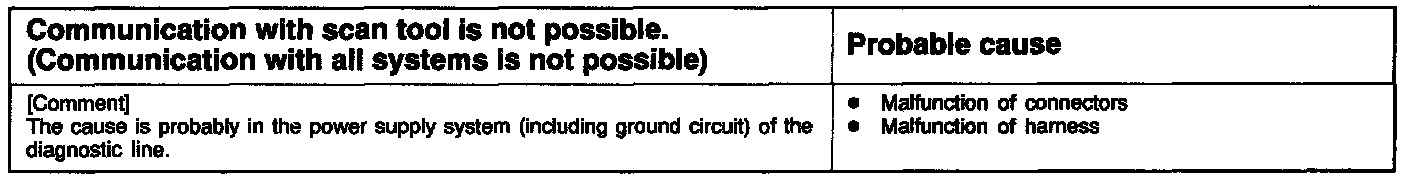 1. Communication With Scan Tool Impossible (Entire System)