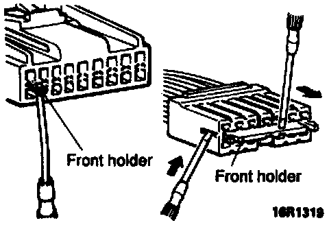 1. Insert screwdriver [1.4 mm (0.06 in.) width] as shown in the figure, disengage front holder and remove it.