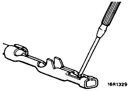 3. Press contact point of male terminal down by holding a screwdriver [1.4 mm (0.06 in.) width] in a manner as shown in the figure.