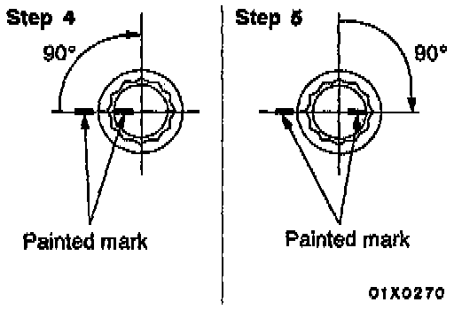- Always make a tightening angle just 90°. If it is less than 90°, the head bolt will be loosened.