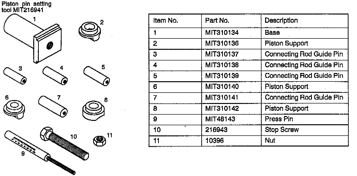 4. Slide the piston pin over the threaded end of the press pin, and thread the correct guide pin up against it.