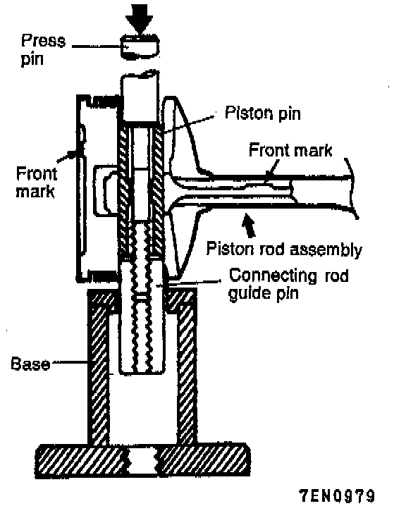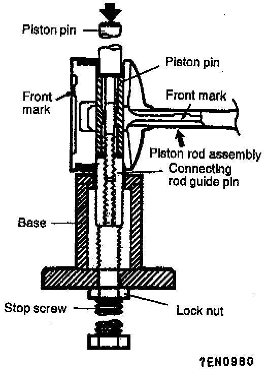 6. Press the piston pin through the connecting rod until the guide pin contacts the stop screw.
