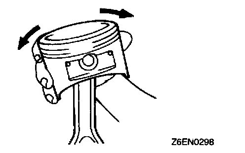 5. Coat the piston pin with oil, and with the connecting rod held in position, slide the guide pin through the piston and connecting rod.