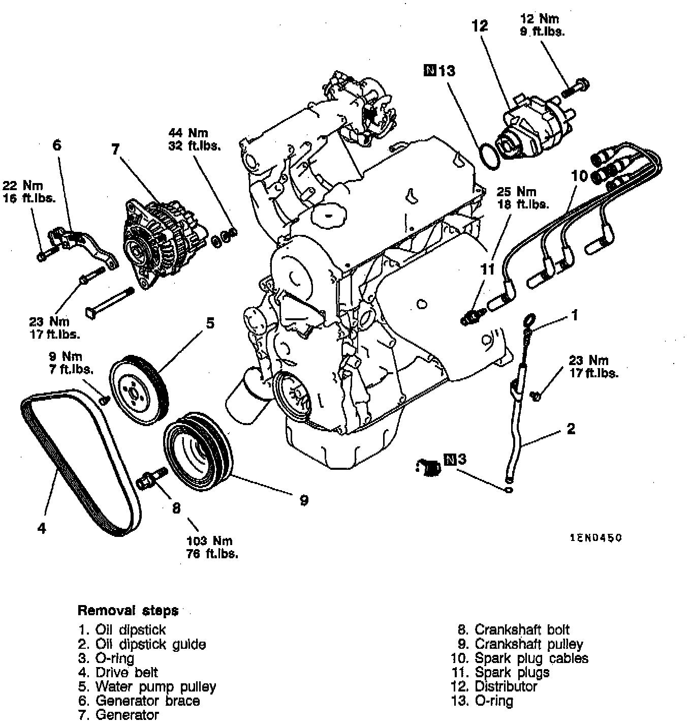 6. Reverse procedure to install, being sure to tighten the crankshaft bolt to 103 Nm (76 ft. lbs.).