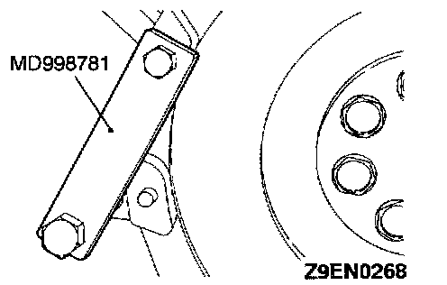 2. Use the flywheel stopper tool No. MD998781, or equivalent, when servicing the crankshaft.
