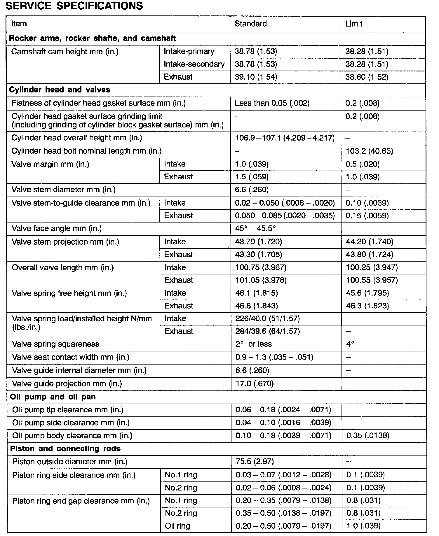 Engine-Overhaul Specifications