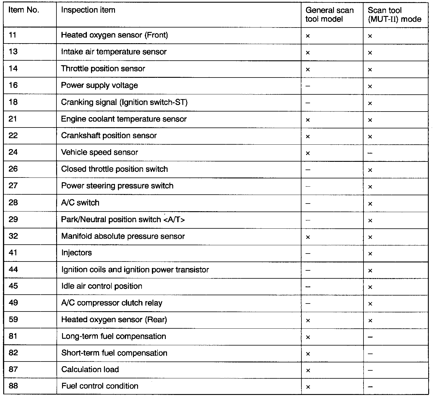 Scan Tool Test Index