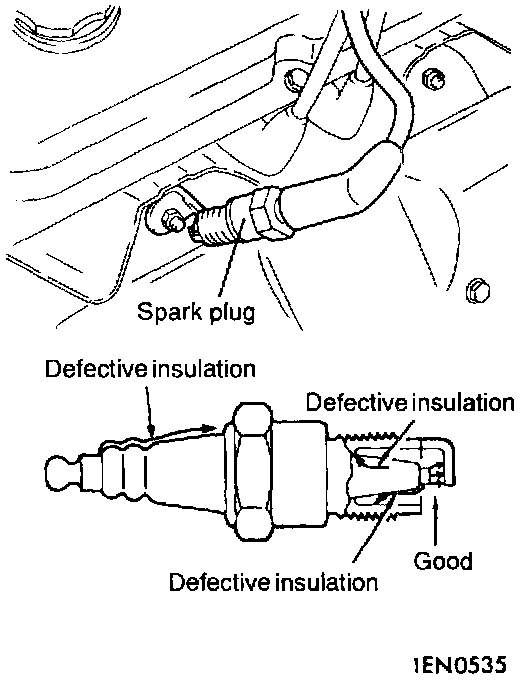 2. Ground the spark plug outer electrode (body) and crank the engine. Check for spark across the electrodes.