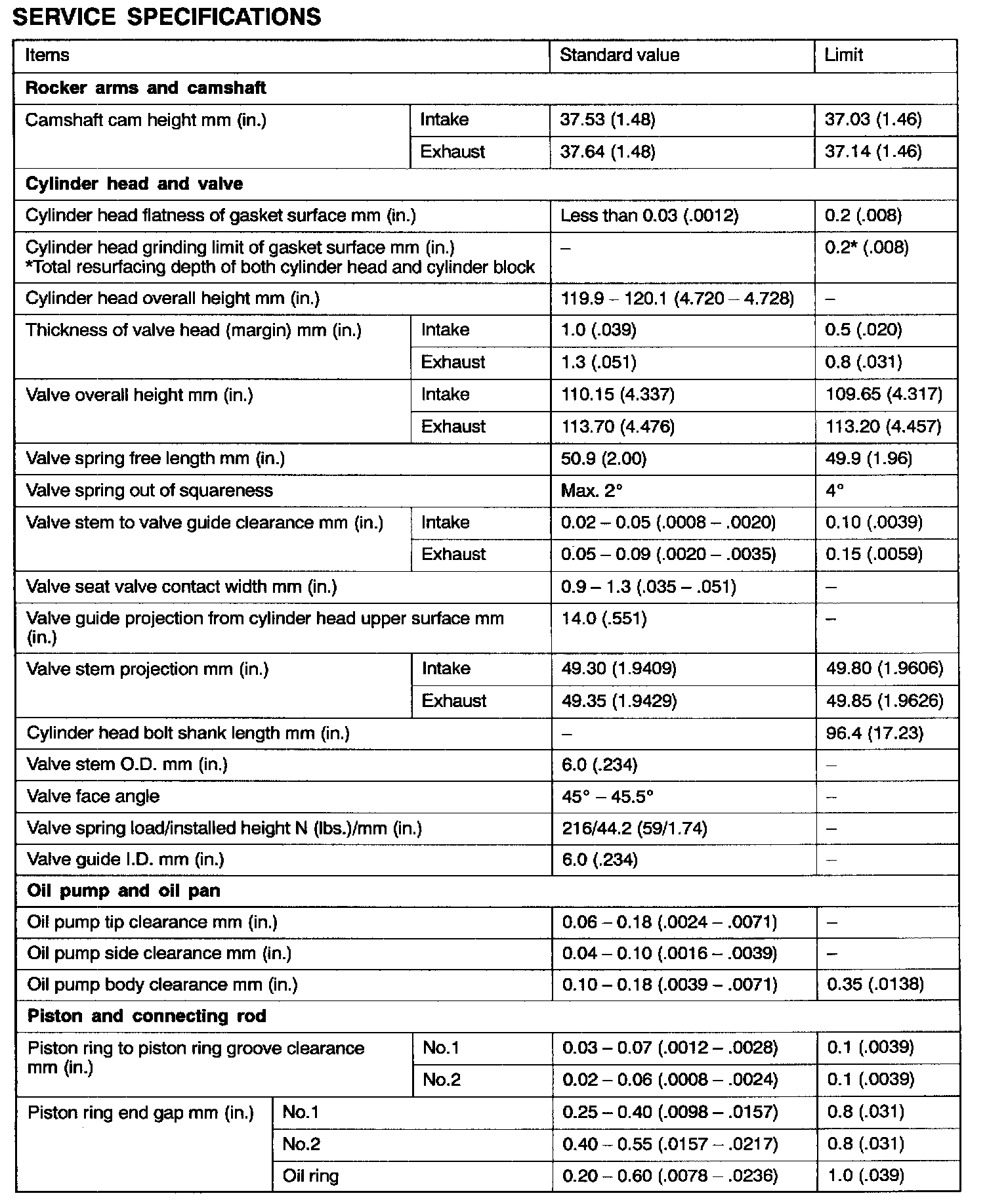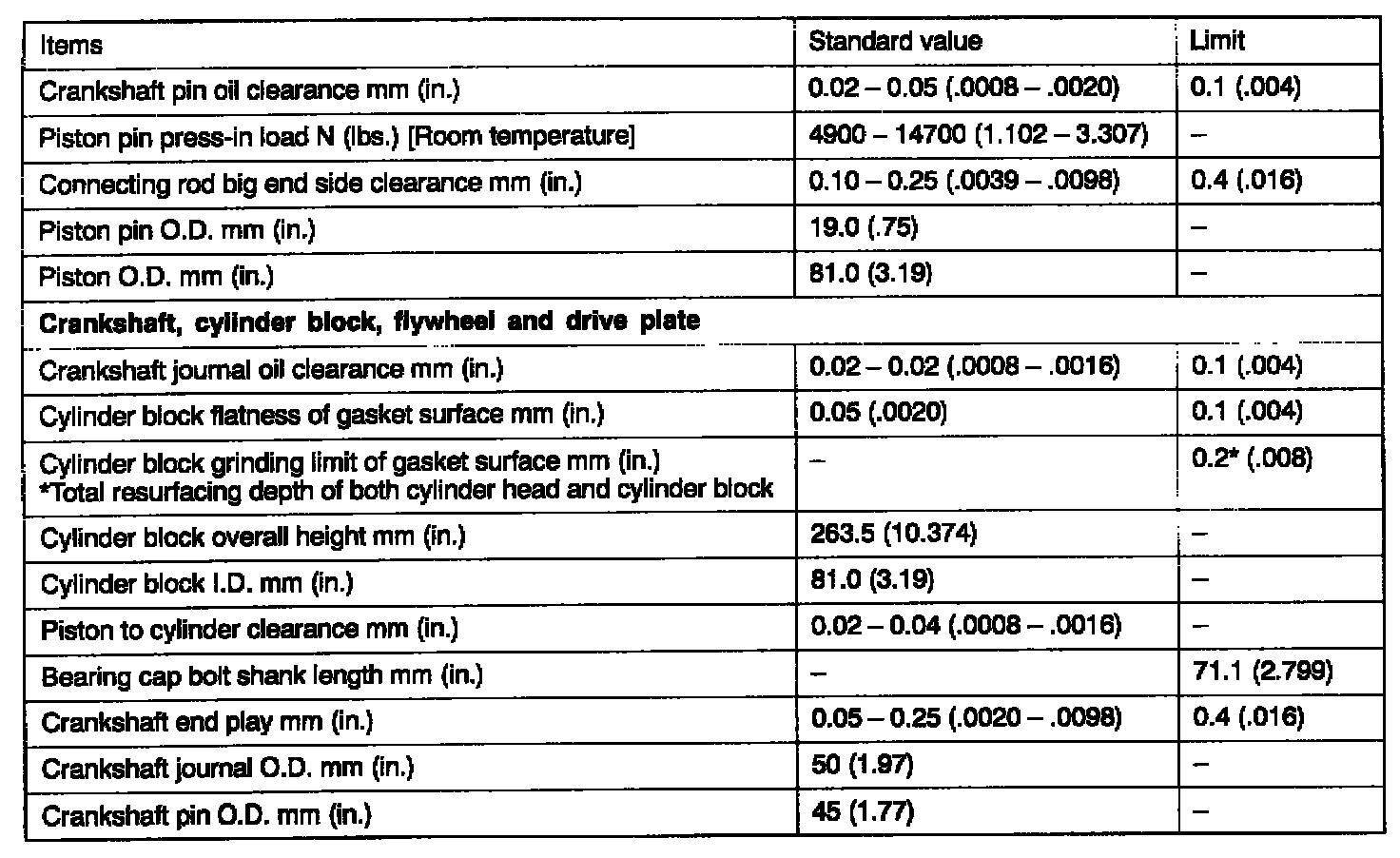 Engine-Overhaul Specifications