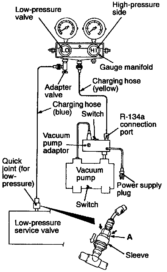12. Turn the vacuum pump adaptor switch to the R-134a side to start the vacuum pump.