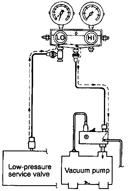 CAUTION: If the negative pressure drops, increase the tightness of the connections, and then repeat the evacuation procedure from step (12).