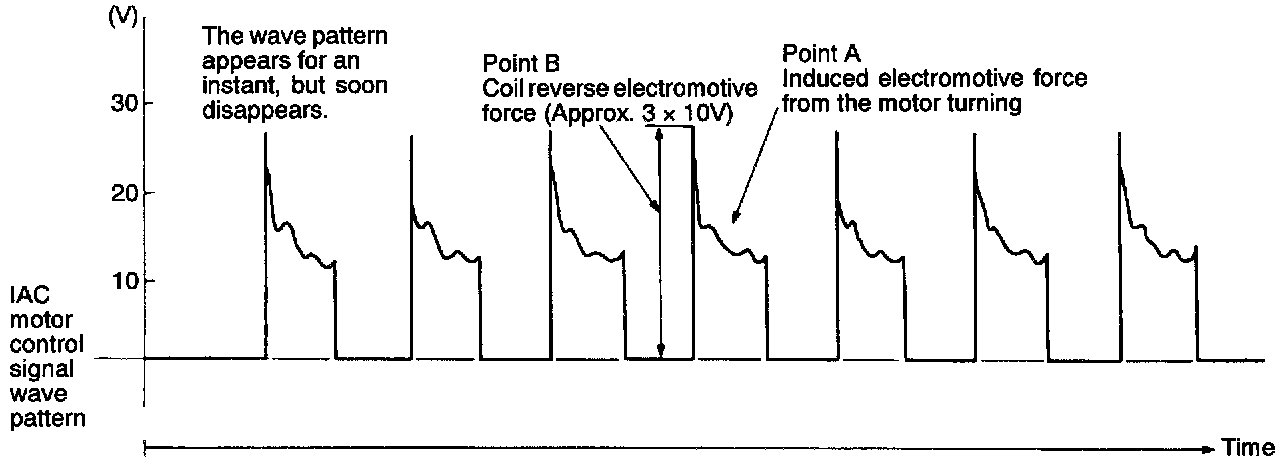 Check that the standard wave pattern appears when the IAC motor is operating.