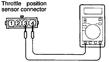 2. Check the continuity between the throttle position sensor connector side terminal 3 and terminal 4.