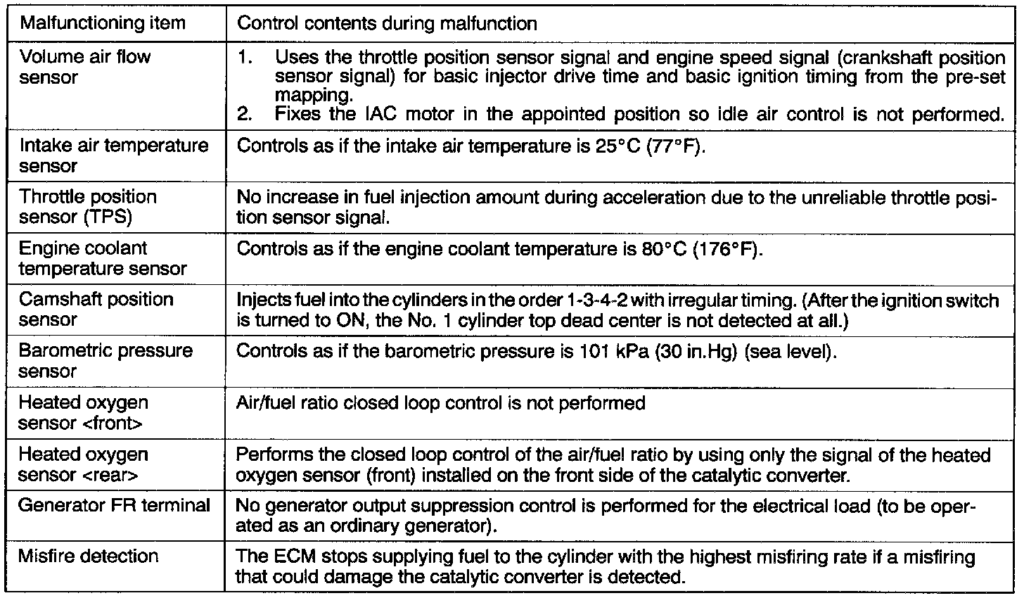 When the main sensor malfunctions are detected by the diagnostic test mode, the vehicle is controlled by means of the defaults.