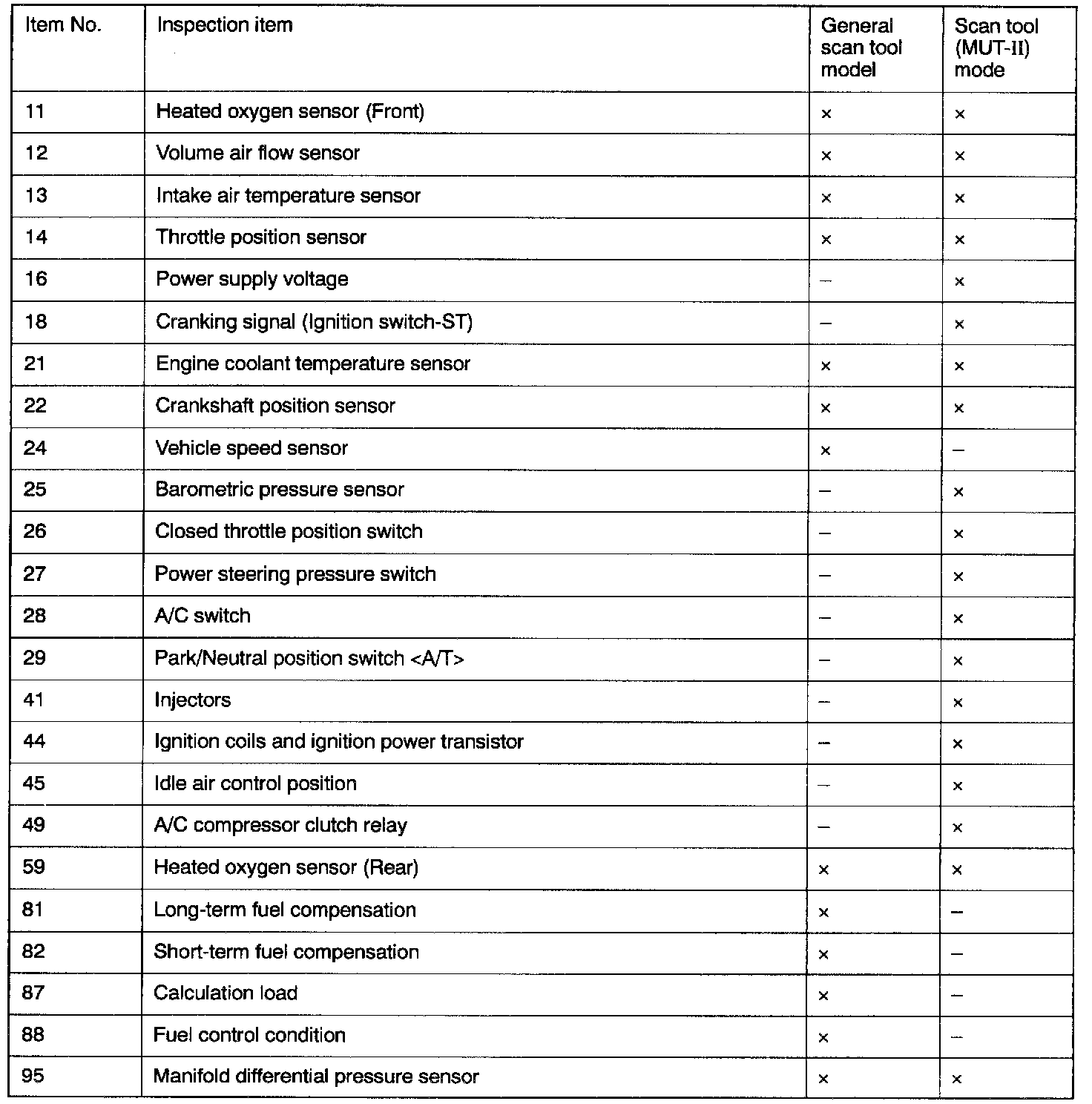 Scan Tool Test Index