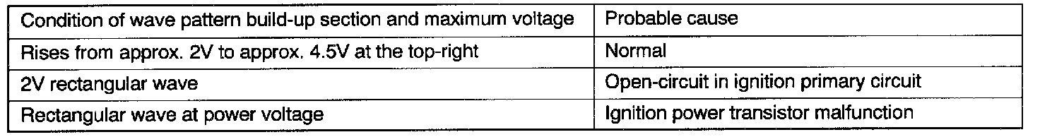 Point: Condition of wave pattern build-up section and maximum voltage (Refer to abnormal wave pattern examples 1 and 2.)