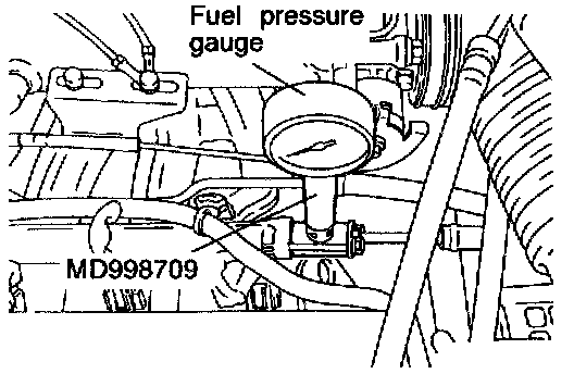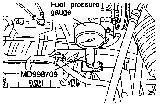 Use a suitable O-ring or gasket between the fuel pressure gauge and the special tool so as to seal in order to prevent fuel leakage at this time.
