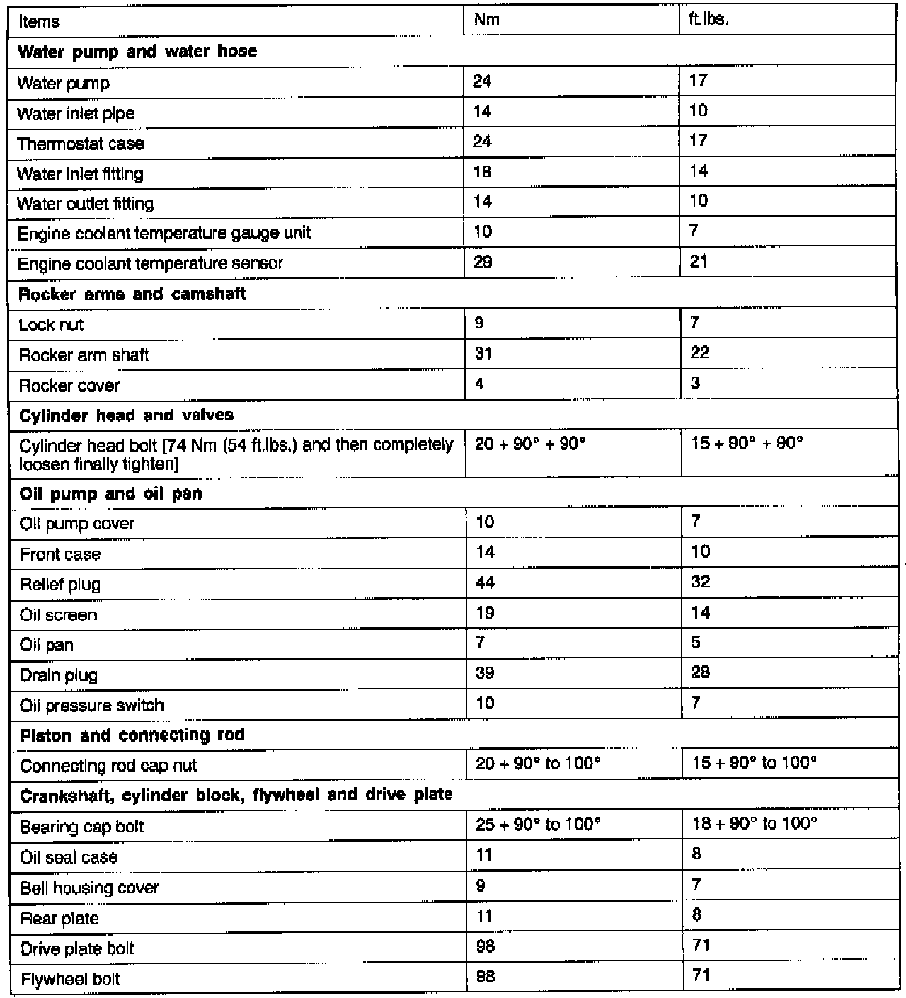 Fastener Tightening Specifications
