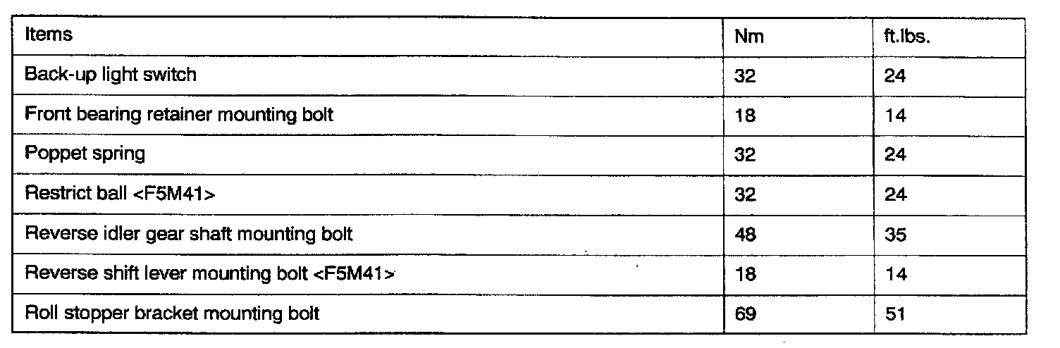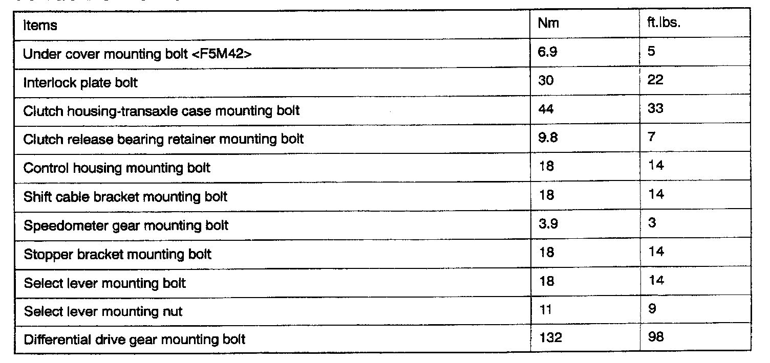 F5M41/F5M42 5-spd M/T, Transaxle Torque: