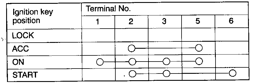 Ignition Switch Continuity Check - Chart:
